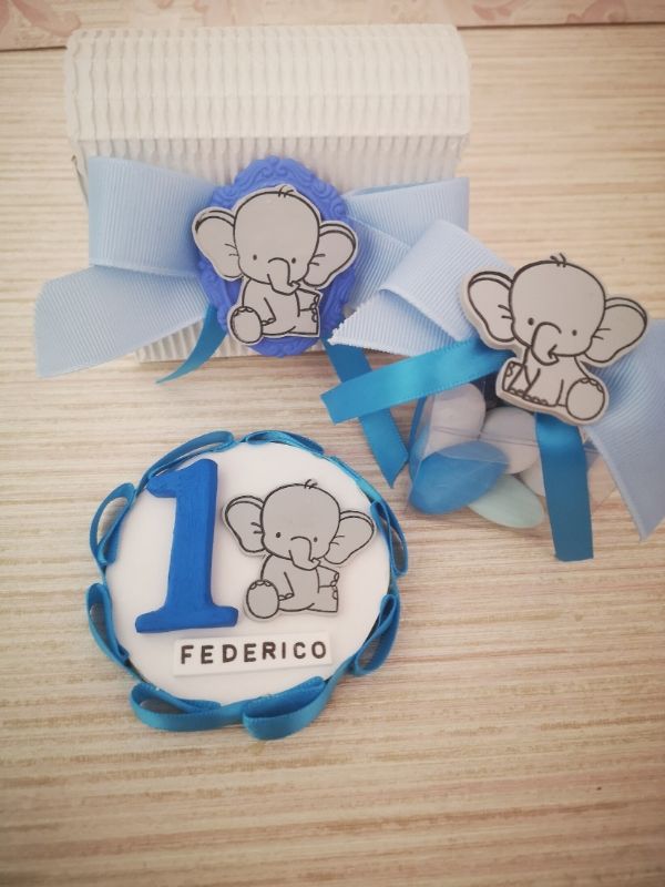 - Targhetta calamita 1 compleanno 7€ – Scatolina con elefantino 5€