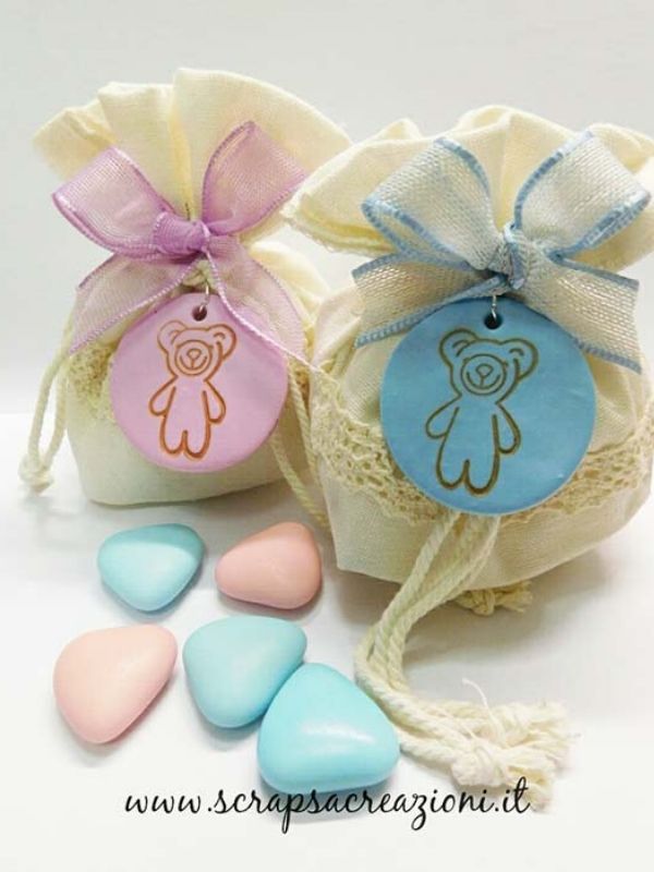 I sacchetti possono accompagnare le bomboniere o essere dei pensierini per amici e conoscenti. Perfetti sia per battesimo che per la nascita.