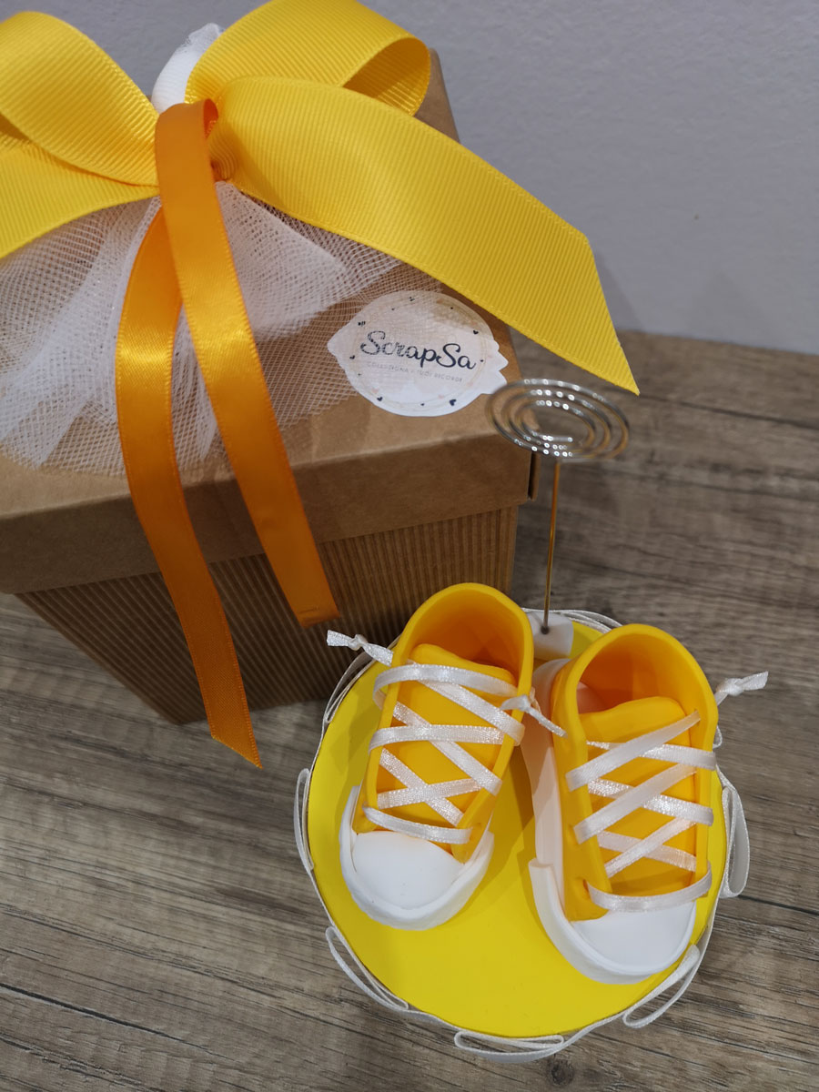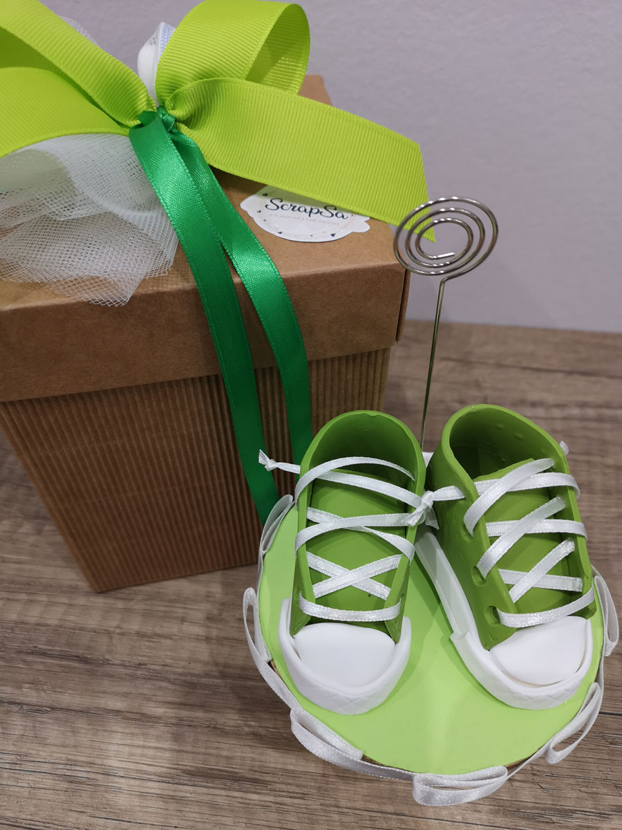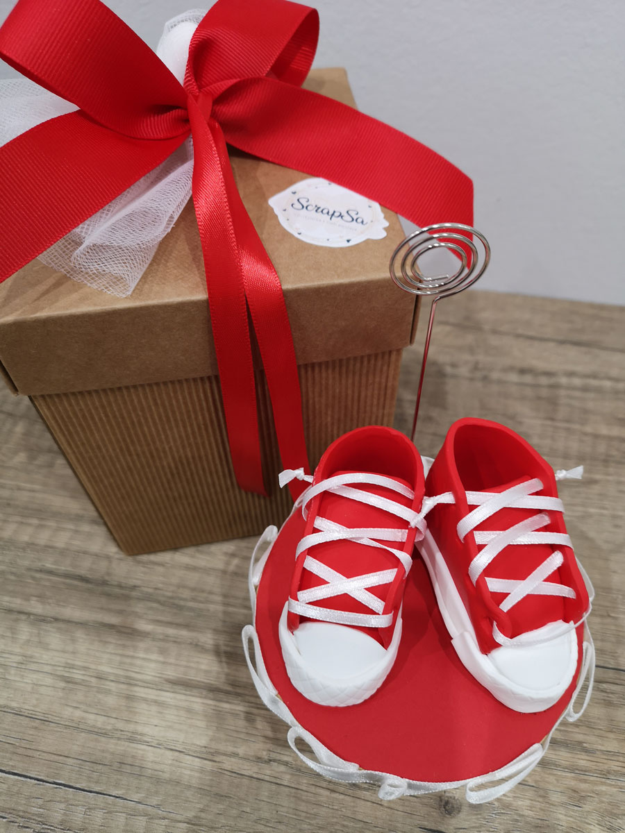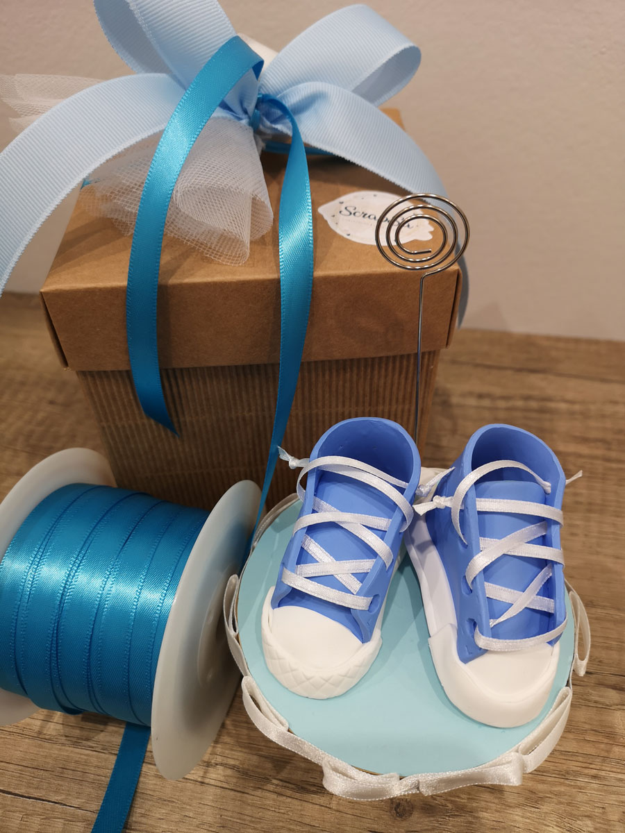 La coppia di scarpette è un tema che si incontra frequentemente quando si deve scegliere la bomboniera per la nascita di un bimbo. Ciò che rende questa bomboniera davvero originale sono alcune caratteristiche: